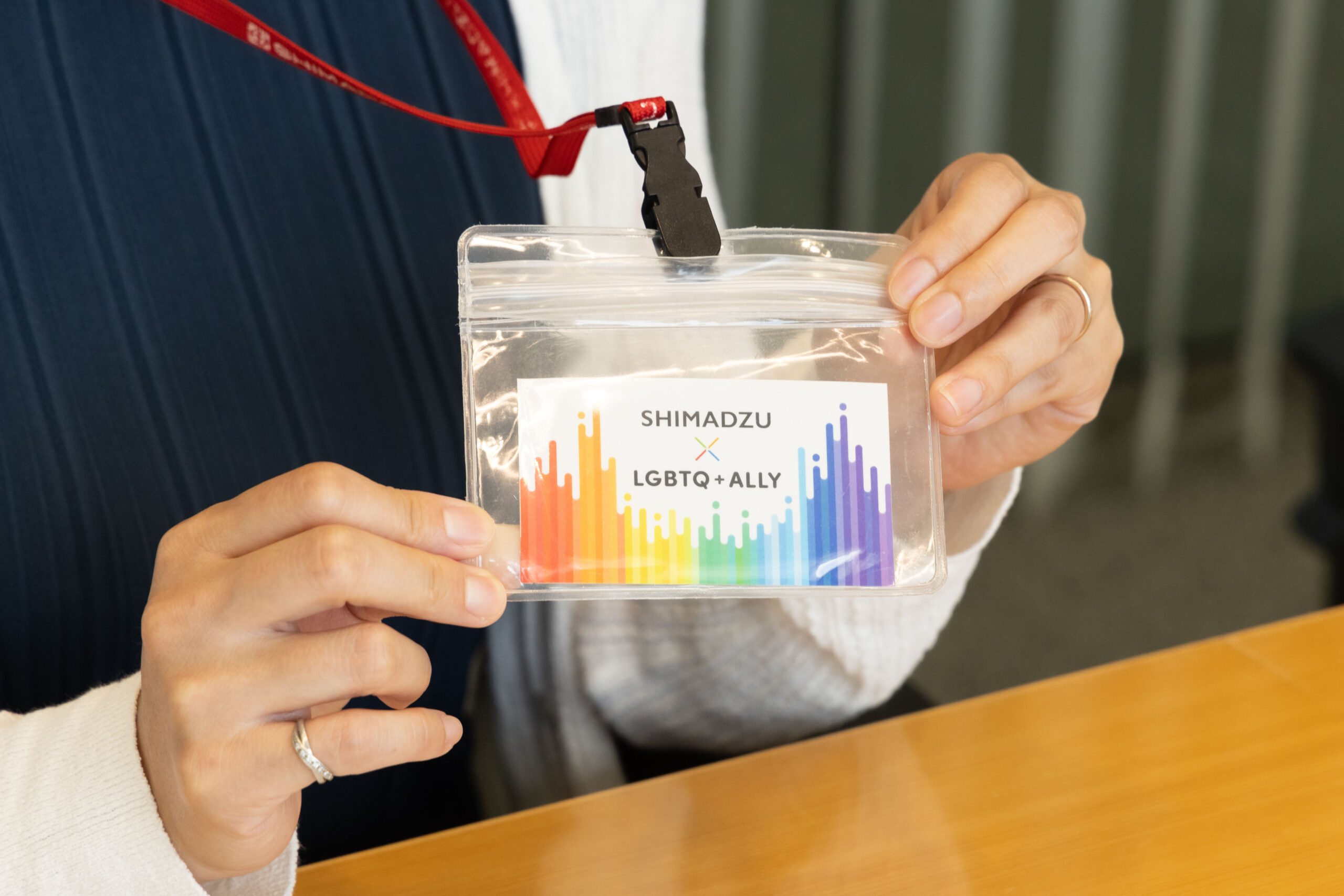 斎藤:約2年前、社内の堀川さんの講演会に参加された方や動画を見てくださった方にアライの表明についてのアンケートを行ったところ、多くの方が賛同してくれました。 講演会に合わせて作った「島津 LGBTQ+アライのステッカー」や弊社のネットワークに表示される顔写真のアイコンにアライのマークをつけてくださった方も多いです。このアライマークは、オンライン会議のときなどにも表示されるので、その際にアライマークを説明したり、講演会を行ったことを宣伝したりすることにもつながっています。DE&Iに全く関係のない場面で人事部以外の社員がアライのステッカーを付けている人を見かけると、アライコミュニティが広がっていっていることを実感し、取り組みの効果を感じます。