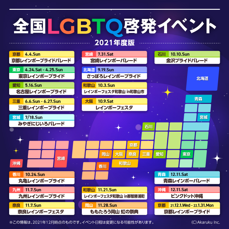 本日は今まであるようでなかった、「全国のLGBTQ+啓発イベントをまとめたマップの一覧図」をアカルクで作成したので共有します!