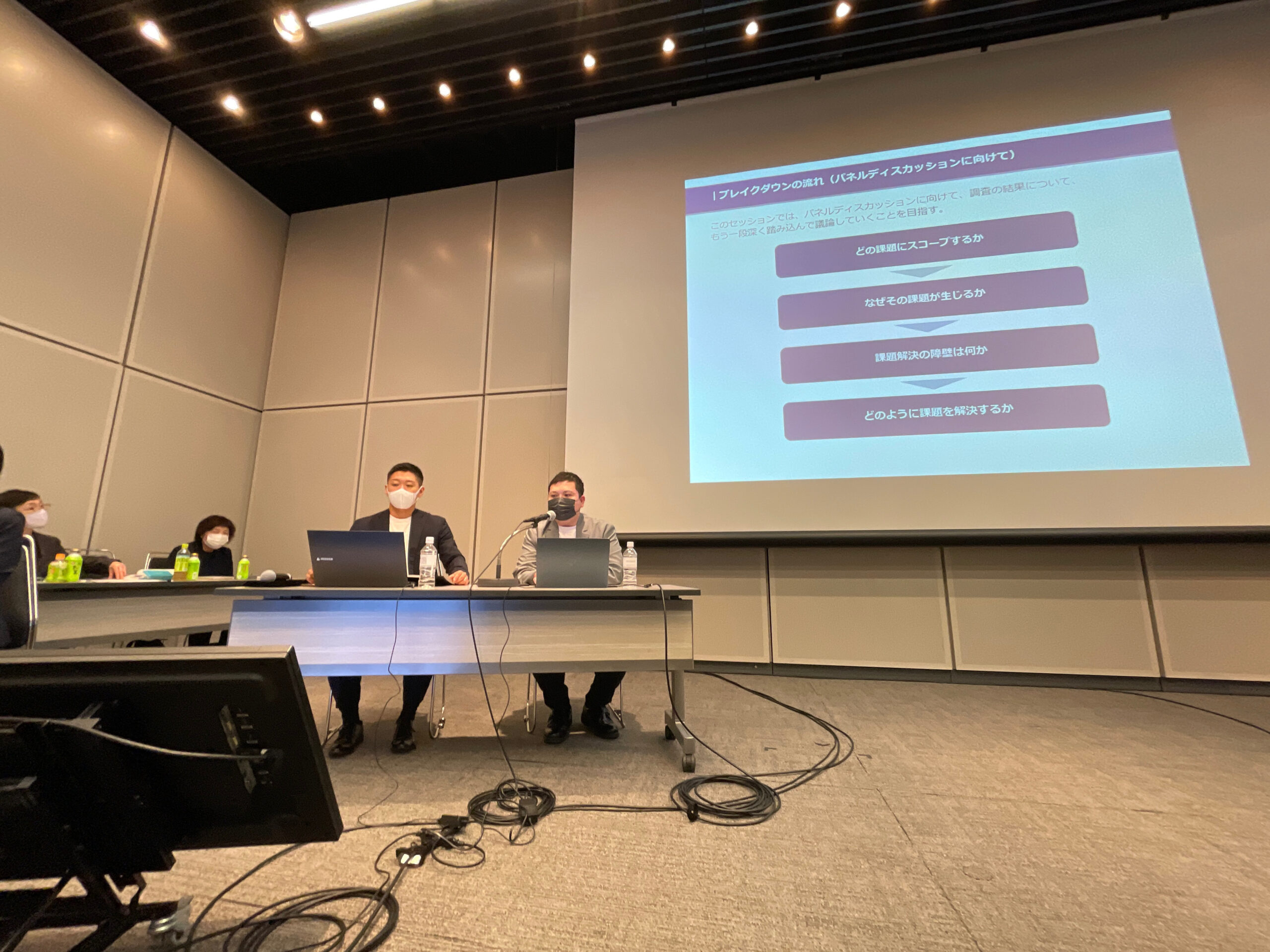 堀川の知り合いの方(なんとこの方も経営者!)と合流し、一緒に参加しました。ここでは、「写真撮影」「速報レポート作成」の役割を担います。