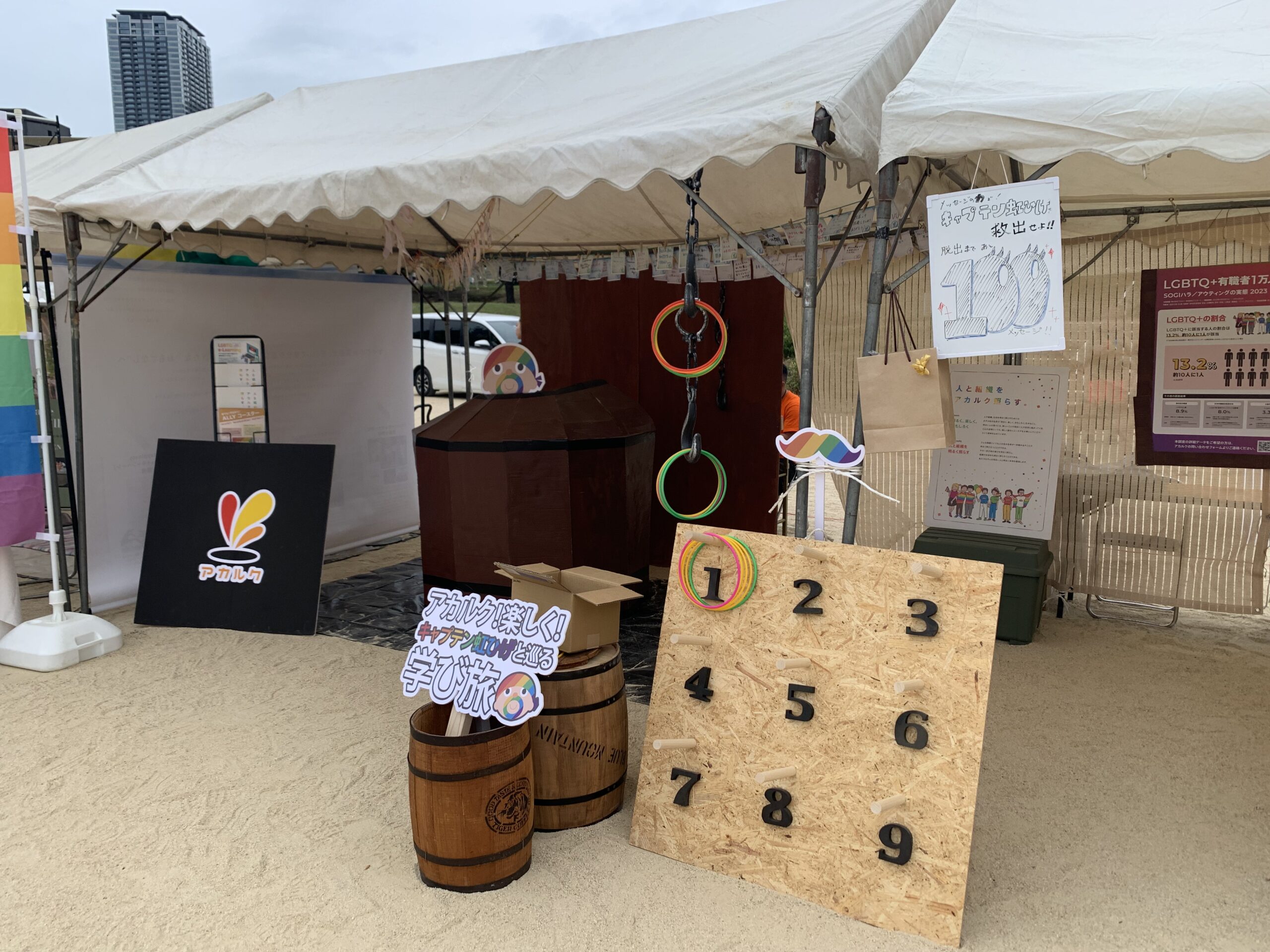 アカルクのブースでは他にも「輪投げ」「調査結果のパネル展示」とバラバラのことを行いましたが、「多様な人々が楽しめると同時に学べるブース」という一本の「軸」があることでそれぞれのターゲットにも「社会を“アカルク”していきたい」という意図が伝わりました。