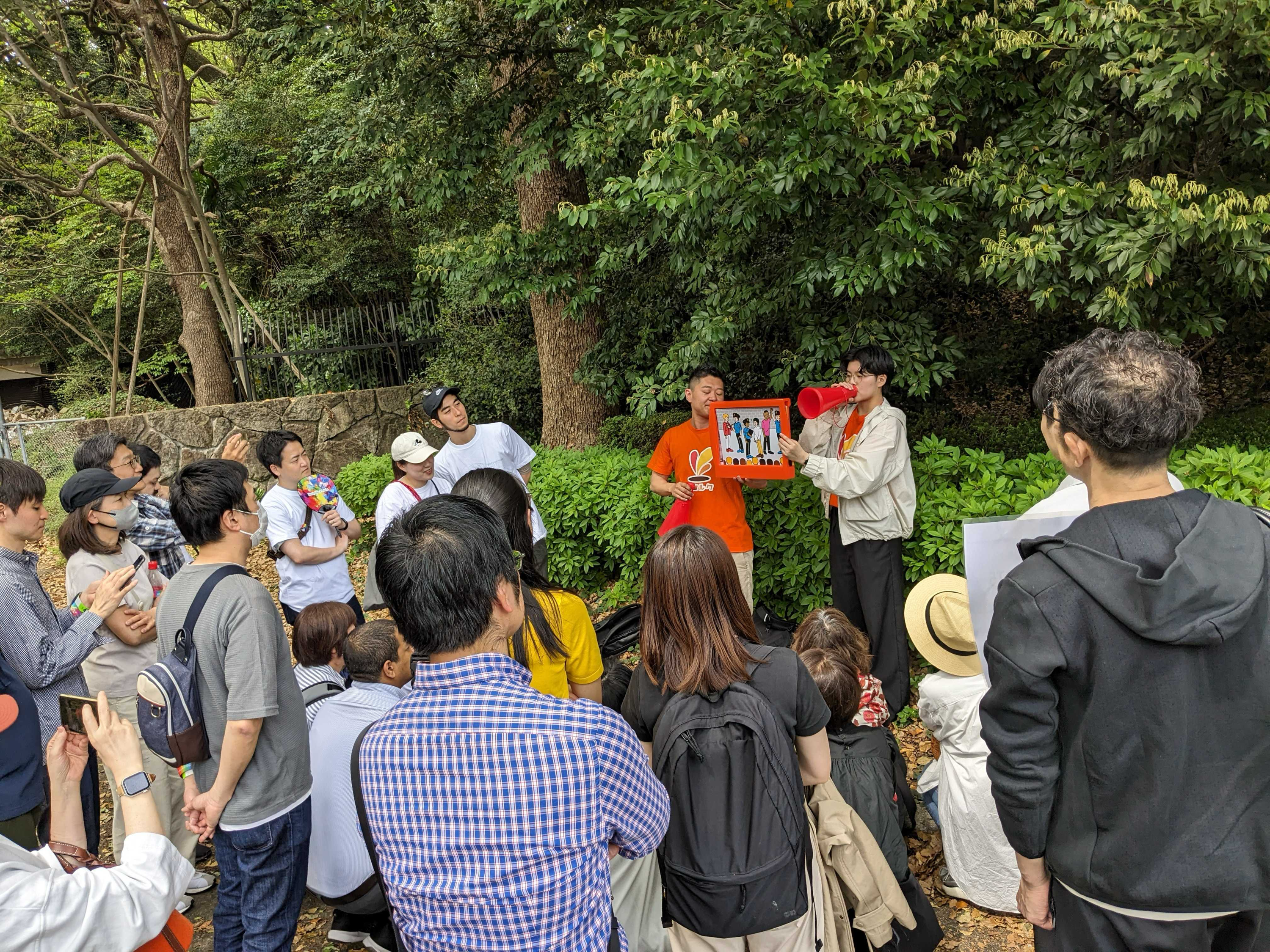 前日に堀川さんと実際に会場をまわりながら、当日紙芝居を行う場所や見学ツアーのルートを決め、準備万端で見学ツアー当日を迎えました!