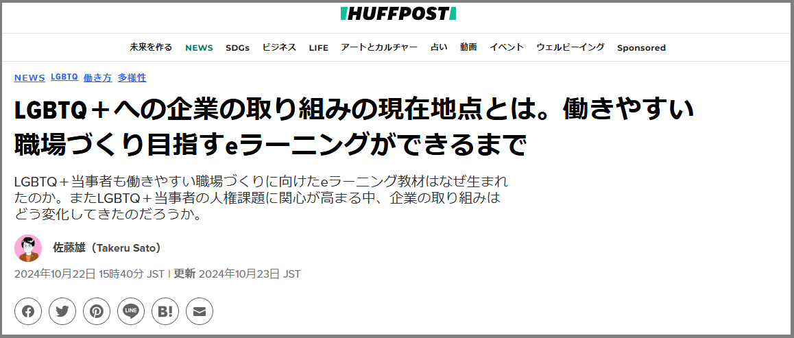 弊社の「学んで終わらない!LGBTQ+ e-Learning」が紹介されました!